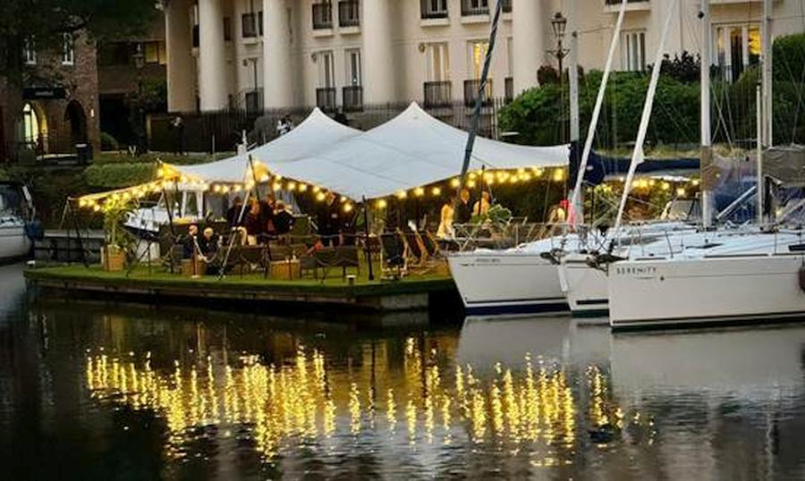 160 years as brethren deliver three cheers of lodge 969 on floating garden of St Katherines in summer heatwave